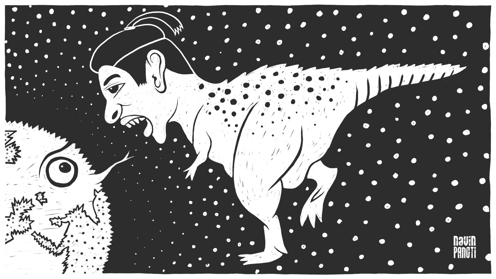 Dinosaurs were the Hiranyakashyap of their times. God knows who played the role of Narsimha and slayed them. It could have been the asteroid. Or maybe it was a virus which acted as a malware, activated through a species hop, to implement a course correction measure because a lone species was hogging too much of the limelight in a play which was designed for multiple characters.