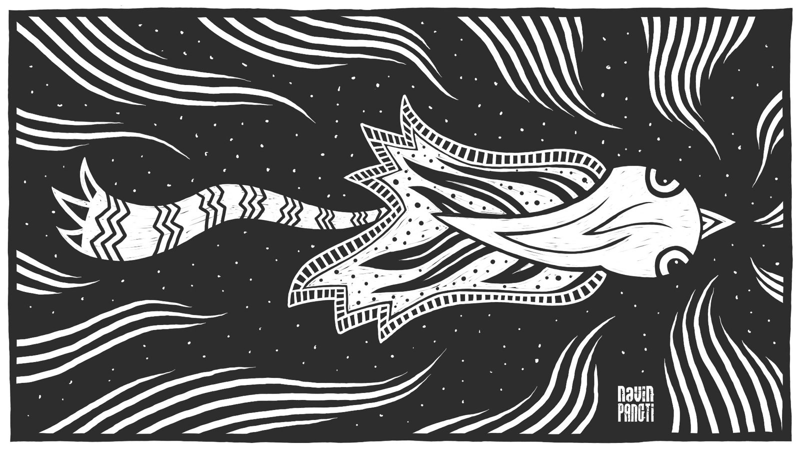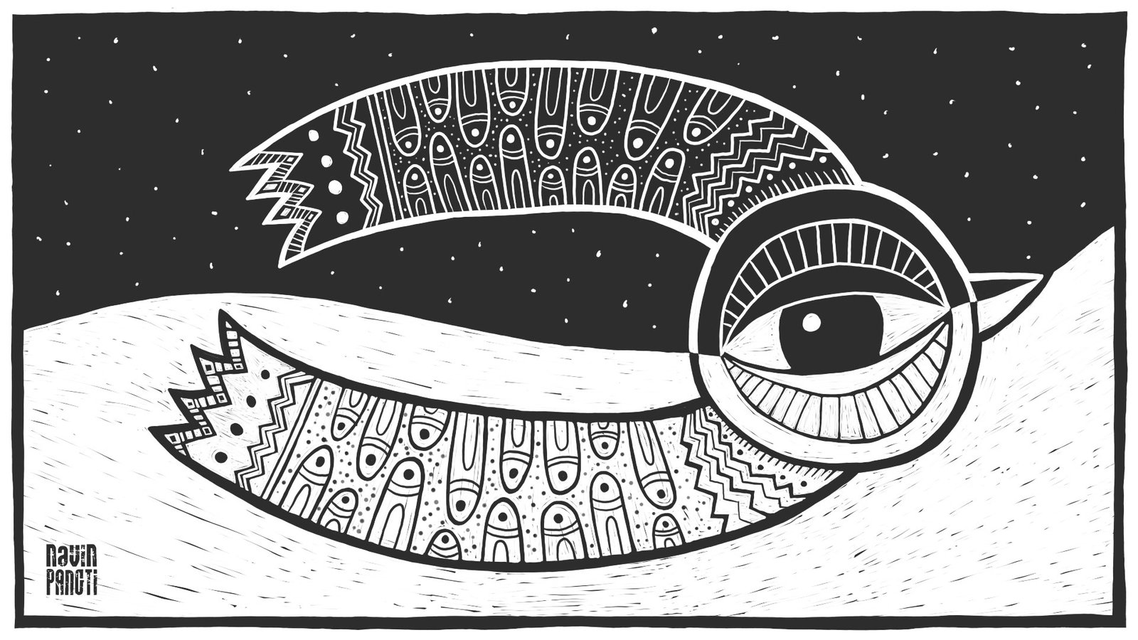 Deep at night, a bird in flight,